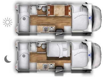 Kastenwagen und Campervan sind Campingfahrzeuge, die kleiner als die vorher beschriebenen Aufbaumodelle sind. Manche Kastenwagen und Vans verfügen über ein manuelles Aufstelldach. Das Aufstelldach benötigst du, wenn du mit vier Personen reisen möchtest. Egal ob verwinkelte und kleine Gassen oder weitläufige Straßen und Promenaden, ein Kastenwagen oder Van macht dich flexibler und ist alltagstauglich. Er ist nur zwischen 5,40 und 6,40 Metern lang. Campervans eignen sich ideal für jeden Roadtrip.